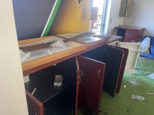 – 4 σουίτες με σπασμένες πόρτες και τζαμαρίες, έπιπλα κατεστραμμένα, γραμμένους τοίχους