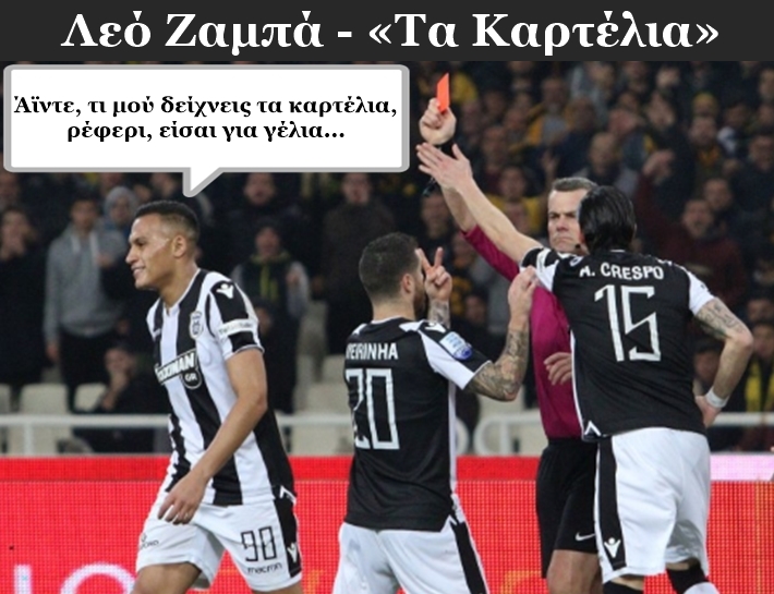 στο 21΄ δείχνει αυστηρή κάρτα στον Ζαμπά