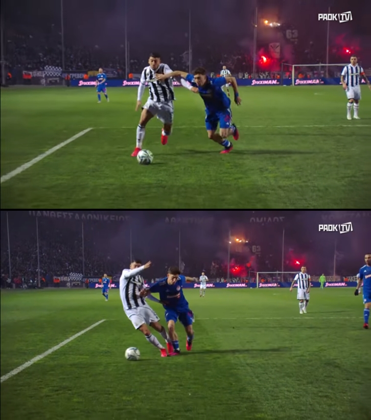 -εντός των θεμιτών ορίων- από τον αμυντικό τού Ολυμπιακού.