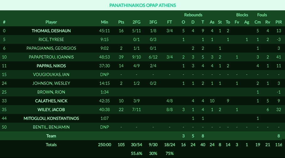 Ο Παναθηναϊκός προηγείται με 105-103 (!) στη δεύτερη παράταση