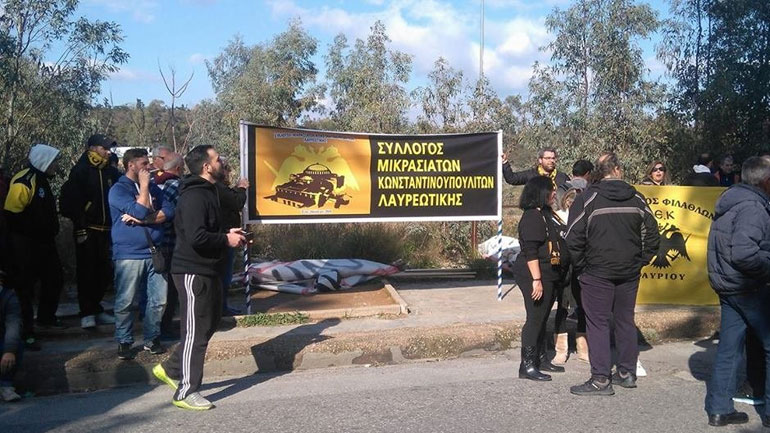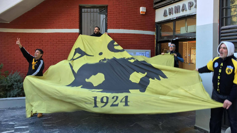 Δεν έλειψαν τα συνθήματα κατά του Δημάρχου Νέας Φιλαδέλφειας, Αρη Βασιλόπουλου, αλλά σε γενικές γραμμές τα πράγματα δεν ξέφυγαν από τον έλεγχο. Η παρουσία του κόσμου ήταν μαζική, συμμετείχαν και τα προσφυγικά σωματεία που έχουν τεθεί επισήμως υπέρ της κατασκευής του νέου γηπέδου, ενώ παρών ήταν κι ο πρόεδρος της ΠΑΕ, Ευάγγελος Ασλανίδης.