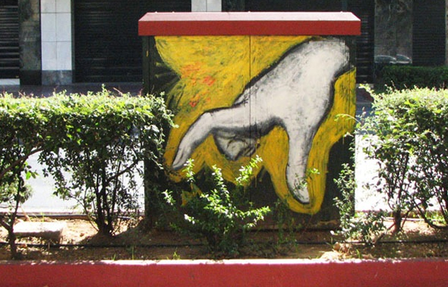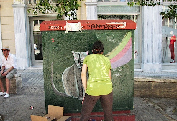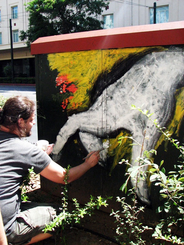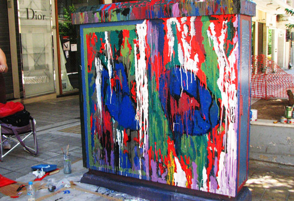 Έτσι έγινε πρόταση σε εικαστικούς και ζωγράφους να μετατρέψουν όποια ΚΑΦΑΟ του κέντρου επιθυμούσαν από διανεμητές ρεύματος/τηλεφωνίας σε μικρούς πίνακες «διανεμητές εικόνων και χρωμάτων».