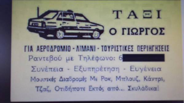 Υπηρεσίες υψηλού επιπέδου παρέχει ένας οδηγός ταξί, τις οποίες φροντίζει να διαφημίζει μέσω της επαγγελματικής του κάρτας.