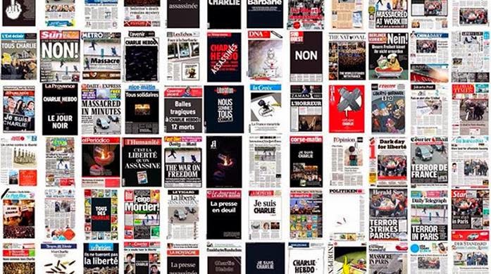 Περισσότερες από 70 εφημερίδες σε όλο τον κόσμο τιμούν τους 12 νεκρούς του Charlie Hebdo και κυκλοφορούν με εξώφυλλα μέσα από τα οποία εκφράζεται ο αποτροπιασμός για τη χθεσινή αιματηρή επίθεση με καλάσνικοφ στα γραφεία του γαλλικού σατιρικού περιοδικού.