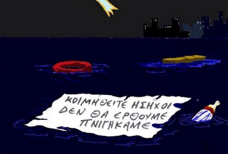 Ένα επίκαιρο και ιδιαιτέρως καυστικό σκίτσο κυκλοφορεί τις τελευταίες ώρες στο διαδίκτυο. Σε μία μόλις εικόνα σχολιάζονται τα κακώς κείμενα της κοινωνίας, μιας κοινωνίας εχθρικής και αφιλόξενης όσον αφορά στα δεινά που υφίστανται οι πρόσφυγες, οι οποίοι ταξιδεύουν πάνω σε σαπιοκάραβα, ρισκάροντας τη ζωή τους στην αναζήτηση μιας καλύτερης ζωής.