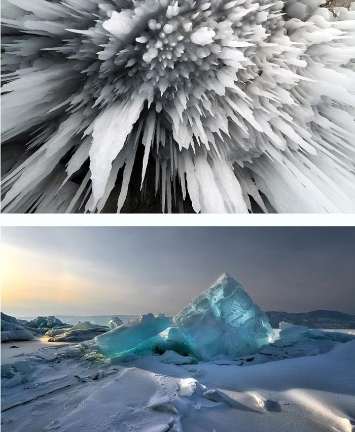 Για όσους δεν αντέχουν το κρύο, όμως λατρεύουν να ανακαλύπτουν τα παιχνίδια της Φύσης –έστω και μέσα από φωτογραφίες τρίτων- δείτε παρακάτω τις εικόνες που απαθανάτισε με το φωτογραφικό του φακό ένας ατρόμητος φωτογράφος στην παγωμένη λίμνη της Βαϊκάλης.