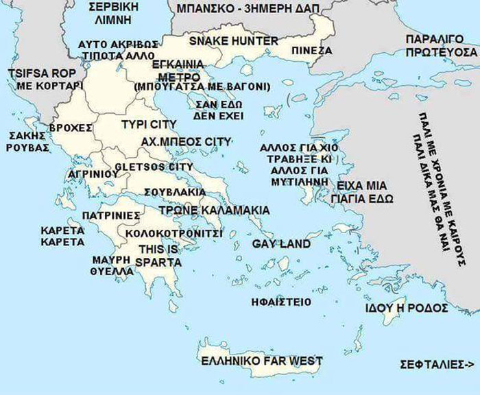 Όταν οι Έλληνες χαρτογραφούν και έχουν και χιούμορ φτιάχνουν τον παρακάτω χάρτη που εδώ και λίγες μέρες  κάνει τον γύρο του διαδικτύου…