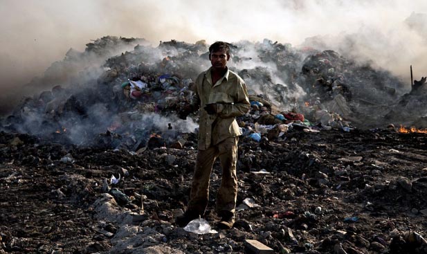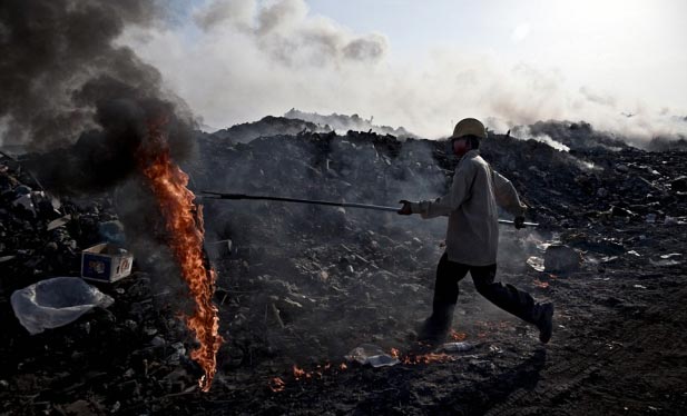 Μετανάστης από το Μπανγκλαντές εργάζεται στην καύση των σκουπιδιών.
