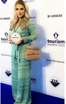 Η κυρία Κασελίμη με τα δύο βραβεία ανα χείρας για το Greek Hospitality Awards του 2023
