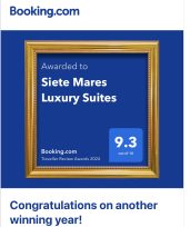 Η απόδειξη για τις εξαιρετικές υπηρεσίες που προσφέρει στους επισκέπτες του το «Siete Mares Luxury Suites and Villas», δεν είναι άλλη από τις 11 διεθνείς βραβεύσεις που έχει κερδίσει στα τέσσερα χρόνια της λειτουργίας του. Ανάμεσα τους ξεχωρίζουν το Best dealer’s awards το 2020, το Hotel of the Year το 2022 αλλά και η πιο πρόσφατη, το Global Recognition Award φέτος στο Ντουμπάι, μια μεγάλη διεθνής διάκριση η οποία οφείλεται καθαρά στις εξαιρετικές κριτικές των πελατών του.
