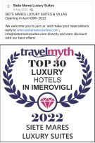 Η βράβευση του 2022 που κατατάσσει το ξενοδοχείο Siete Mares Luxury Suites στα Top 30 Luxury Hotels στο Ημεροβίγλι