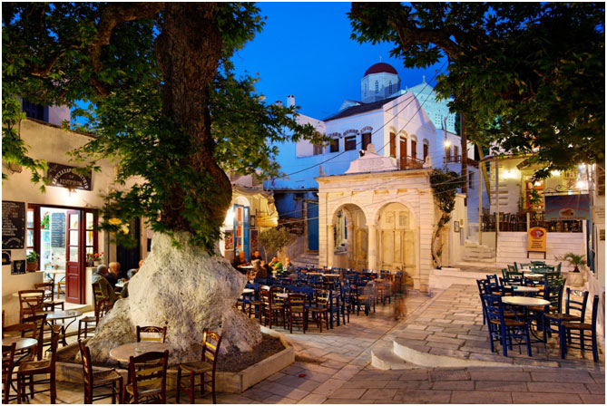 Το νησί της Μεγαλόχαρης, πασίγνωστο για τον Ναό της Ευαγγελιστρίας με τη θαυματουργή εικόνα της Παναγίας, χαρακτηρίζεται από τις εκατοντάδες εκκλησίες και τα κυκλαδίτικα ξωκλήσια του, την αρμονική συνύπαρξη Ορθοδόξων και Καθολικών, καθώς και από την καλλιτεχνική παράδοση της μαρμαρογλυπτικής και τους περίτεχνους περιστεριώνες.