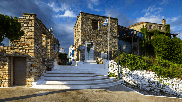 Μεγαλειώδη, πανοραμική θέα προσφέρει η όμορφη Χώρα ή Παλιό Χωριό, η άλλοτε πρωτεύουσα του νησιού, η οποία διατηρεί την παραδοσιακή αρχιτεκτονική της. Χαθείτε στο λαβύρινθο με τα στενά πλακόστρωτα σοκάκια και τα γραφικά εκκλησάκια και απολαύστε μοναδικό ηλιοβασίλεμα σε κάποιο από τα πολλά καφέ – μπαρ ή ταβερνάκια. Δείτε και το μεσαιωνικό κάστρο που ατενίζει το Αιγαίο.
