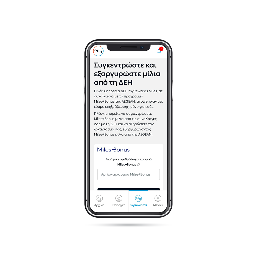 - Συγκέντρωση μιλίων στις συναλλαγές με τη ΔΕΗ.