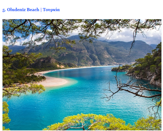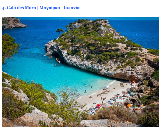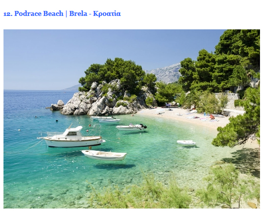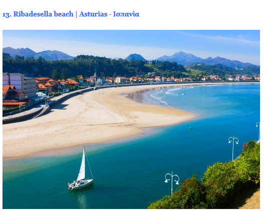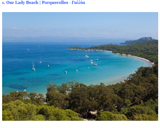 Οι ελληνικές παραλίες που συμπελαμβάνονται στις 15 καλύτερες είναι το διάσημο Ναυάγιο στη Ζάκυνθο (2η θέση στην κατάταξη) και το Πόρτο Κατσίκι στη Λευκάδα (11η θέση).