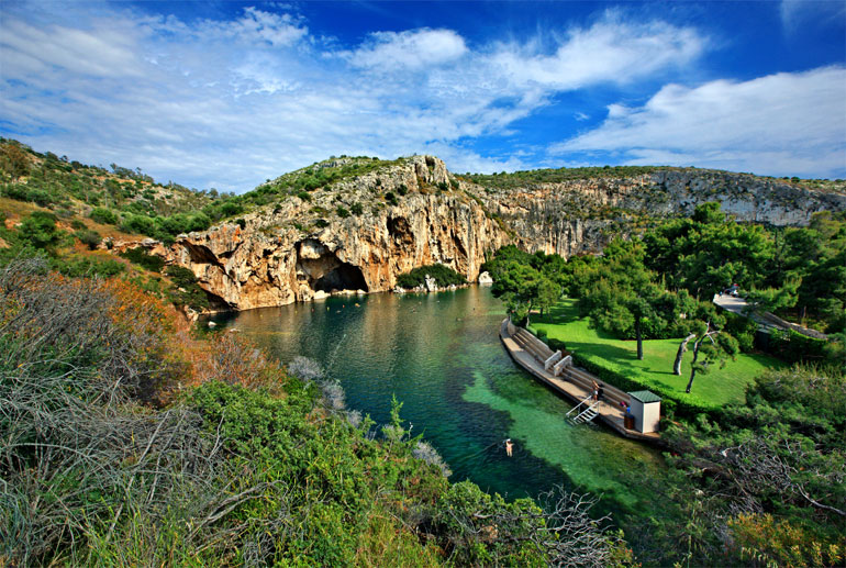 Μισή ώρα από το κέντρο της Αθήνας, βρίσκεται η λίμνη της Βουλιαγμένης με τα ιαματικά νερά. Ιδανική για όλες της ηλικίες και για μπάνιο με θέα τις περίφημες σπηλιές. Απολαύστε τον καφέ ή το ποτό σας μετά το μπάνιο και κάντε ηλιοθεραπεία στις ξαπλώστρες! Οι επισκέπτες καλό είναι να γνωρίζουν ότι πρέπει να πληρώσουν για την είσοδό τους.