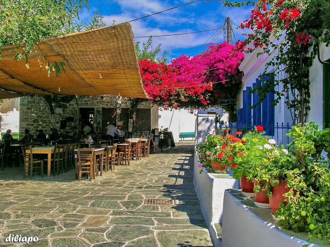 Λευκά πέτρινα σπίτια, μπουκαμβίλιες, ανεμόμυλοι βρίσκονται σε αφθονία στη Χώρα της Φολεγάνδρου.