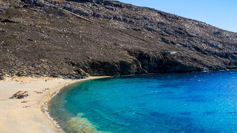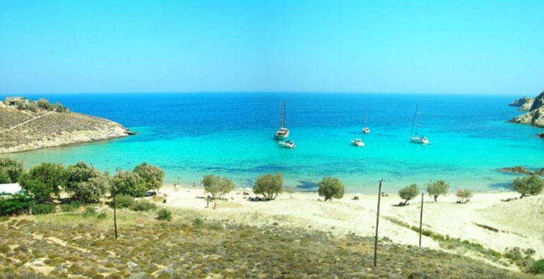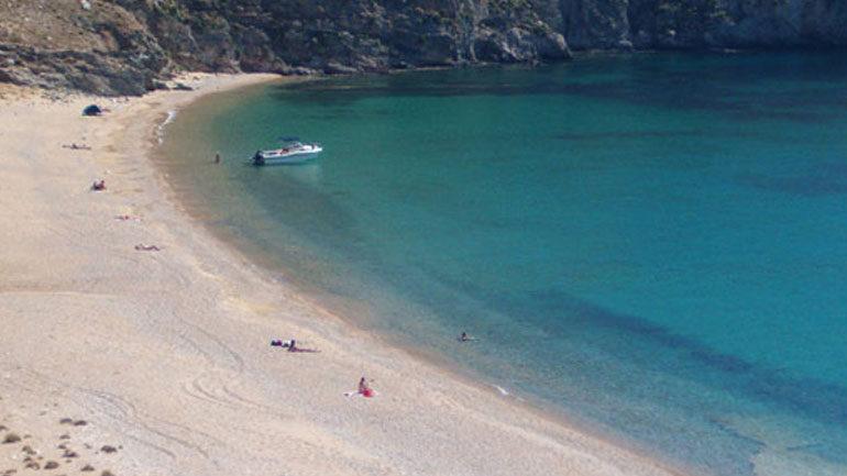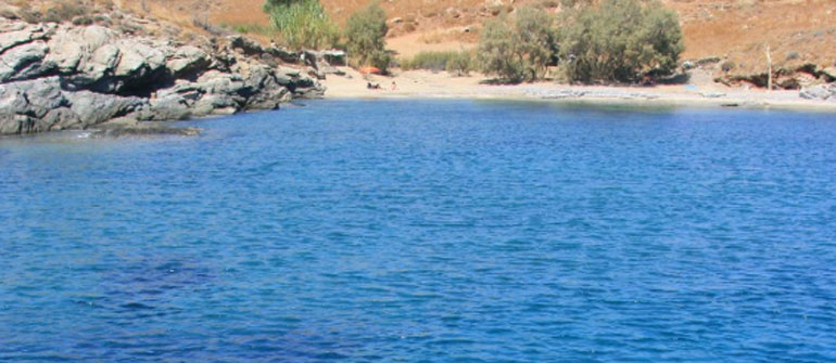 Δίπλα στο Γάνεμα, πλατιά αμμουδιά με πεντακάθαρα νερά.