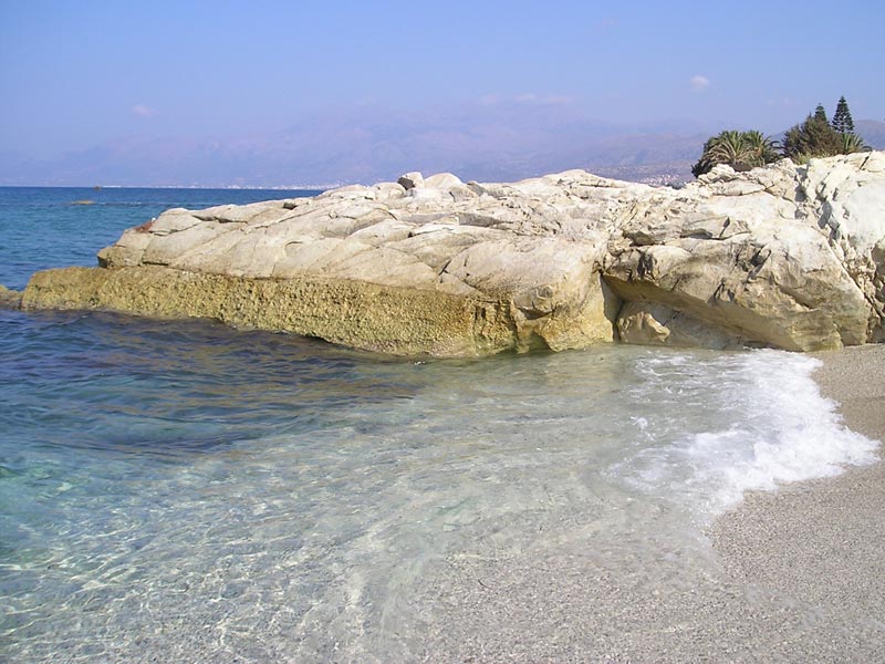 Παραλία του Χρυσόστομου: στους Καλούς Λιμένες, είναι πανέμορφη. Εκεί βρισκόταν η αρχαία Λασαία και ίχνη από το λιμάνι της θα διακρίνετε στο σημείο ανάμεσα στα βράχια και το μικρό νησάκι απέναντι.