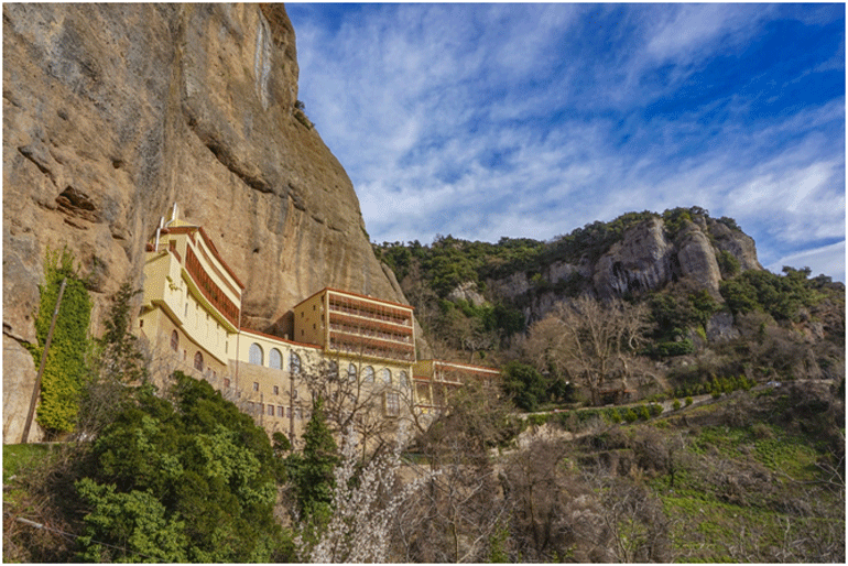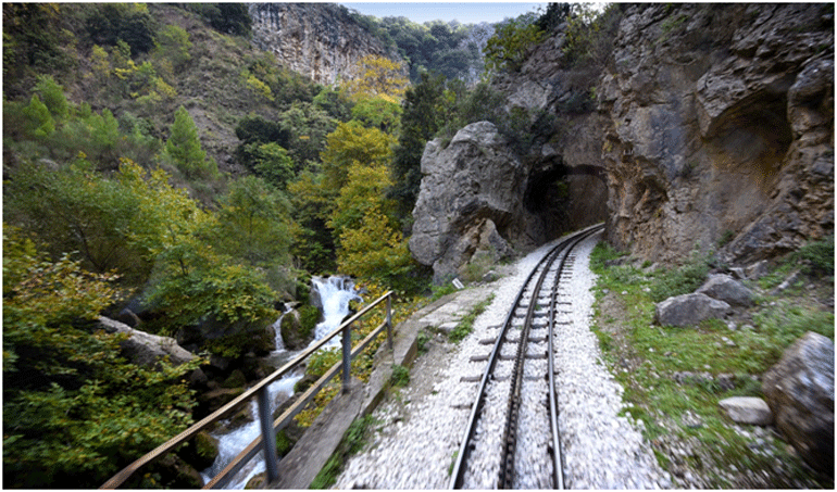 Για να έρθετε στην ιστορική κωμόπολη, που απέχει 190 χιλιόμετρα από την Αθήνα, μπορείτε να ταξιδέψετε και από το Διακοπτό με τον Οδοντωτό, ο οποίος διασχίζει το φαράγγι του Βουραϊκού ποταμού. Η θεαματική διαδρομή, διάρκειας περίπου μίας ώρας, κόβει την ανάσα, καθώς ελίσσεται στην άκρη του γκρεμού, σε μαγευτικά τοπία με πλούσια βλάστηση και καταρράκτες.