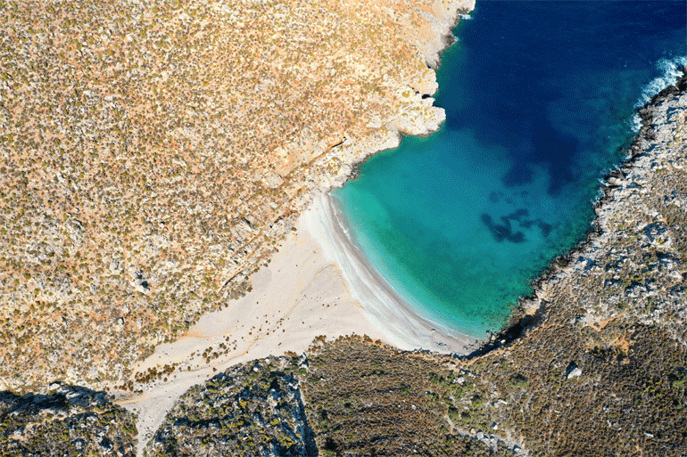 Παρθένες ακτές είναι οι Αλμύρες, οι Μεγάλες και οι Μικρές, δύο παραλίες προσβάσιμες μόνο από τη θάλασσα.