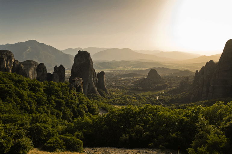 Θεόρατοι βράχοι υψώνονται στον ουρανό πάνω από τον θεσσαλικό κάμπο. Γαντζωμένα στις ράχες τους, φημισμένα μοναστήρια. Απόκοσμη ατμόσφαιρα και δέος. Τα επιβλητικά Μετέωρα συγκλονίζουν με την άγρια ομορφιά τους πλήθος επισκεπτών από όλες τις γωνιές της Γης.