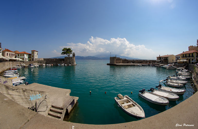 To κομψό ενετικό λιμάνι. To εντυπωσιακό κάστρο ψηλά στον λόφο, με τα τείχη του να απλώνονται μέχρι τη θάλασσα, αγκαλιάζοντας ζεστές γειτονιές με πέτρινα σοκάκια. Η Ναύπακτος, μια γραφική πόλη χτισμένη αμφιθεατρικά στον Κορινθιακό κόλπο, γοητεύει τους επισκέπτες από την πρώτη στιγμή που την αντικρίζουν.