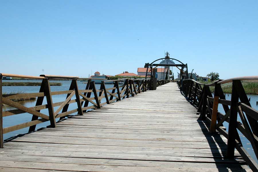 Αν εκτός από φυσιολάτρης είστε και θρησκευόμενος μπορείτε, να επισκεφθείτε ένα πανέμορφο μοναστικό συγκρότημα που βρίσκεται χτισμένο πάνω σε δυο μικρές νησίδες εντός της λιμνοθάλασσας.Το μοναστικό κτίσμα του Αγίου Νικολάου αλλά και ένα μικρότερο παρεκκλήσι με το αντίγραφο της ιεράς εικόνας της Παναγίας Παντάνασσας αποτελούν Μετόχι της Μονής Βατοπεδίου του Αγίου Όρους. Ο τρόπος δε που επικοινωνούν μεταξύ τους όσο και με τη στεριά γίνεται με τις ξύλινες γέφυρες που κατασκευάστηκαν εντός της λίμνης.