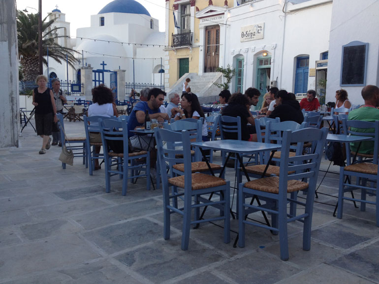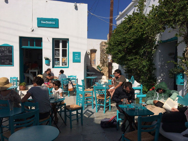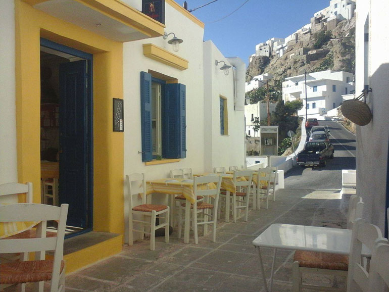 Ωστόσο ενδιαφέρουσες προτάσεις πλέον υπάρχουν και για φαγητό όπως το ‘mini’ εστιατόριο «Ταχυδρομείο» στην Κάτω Χώρα, όπου και στεγαζόταν το παλιό ταχυδρομείο του νησιού μέσα σε ένα πολύ όμορφο και γραφικό σοκάκι και το οποίο σερβίρει πρωτότυπα πιάτα ζυμαρικών κ όχι μόνο.