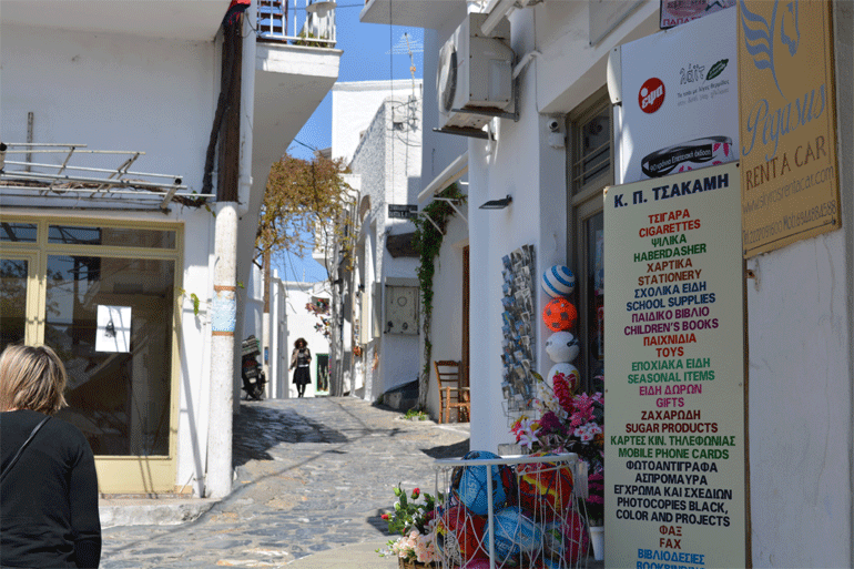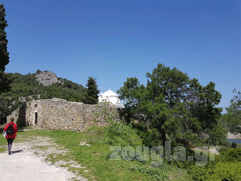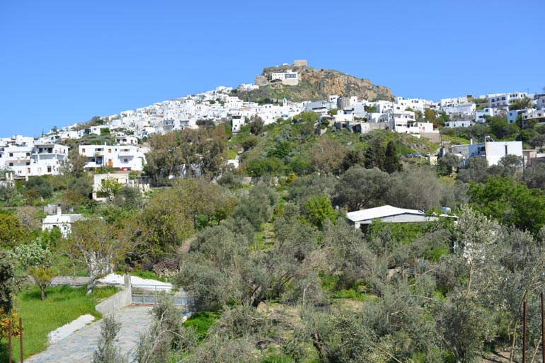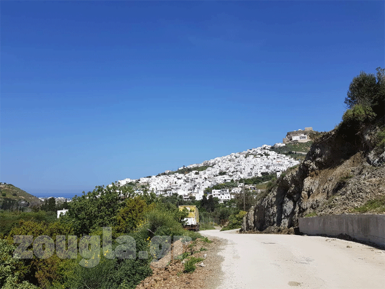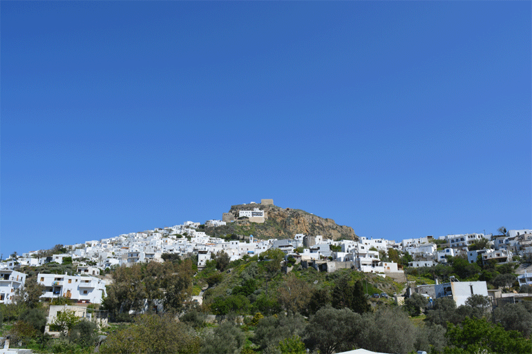 Καταλήγοντας στο ψηλότερο σημείο της χώρας, στον χαρακτηριστικό βράχο του Κάστρου και στο Μοναστήρι του Αγίου Γεωργίου μαγευτήκαμε από τη υπέροχη θέα που αντικρίσαμε. Από τη μια πλευρά απλώνονται κάτω από τα πόδια μας όλα τα σπιτάκια της χώρας και από την άλλη χάνεται το μάτι σου στο απέραντο γαλάζιο.