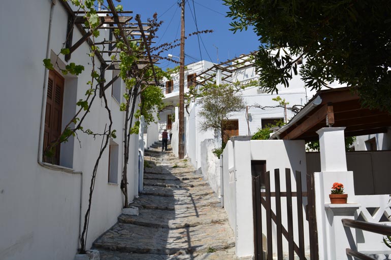 Η Χώρα της μας εντυπωσίασε με τη μοναδική διακόσμηση των λευκών σπιτιών χτισμένα το ένα πλάι στο άλλο. Εξερευνώντας την χαθήκαμε μέσα στα πετρόχτιστα δρομάκια της, θαυμάζοντας την τοπική αρχιτεκτονική και τα πλούσια διακοσμημένα σκυριανά σπίτια.