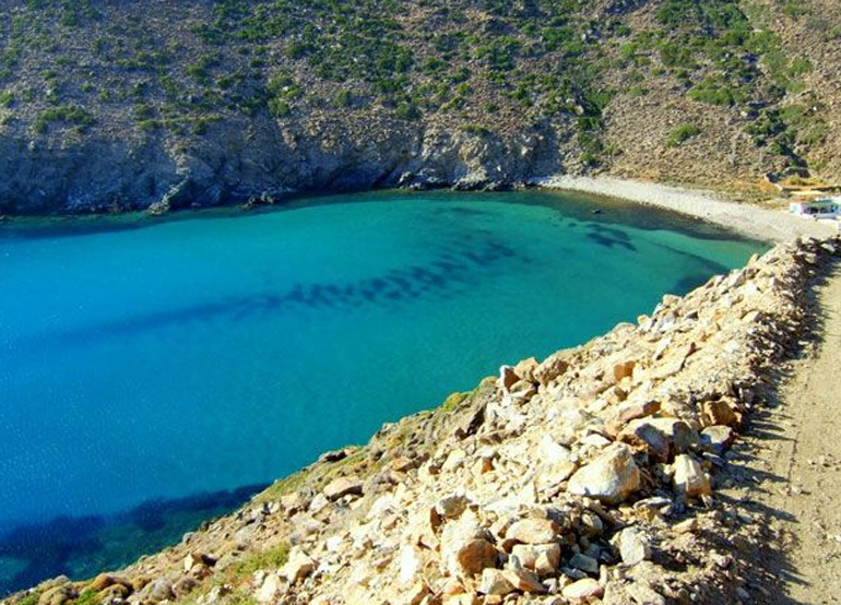 Στην πολυφωτογραφημένη Χρυσοπηγή όπου κάναμε ηλιοθεραπεία πάνω στα βράχια. Κοντά στη Χρυσοπηγή βρήκαμε την αμμουδιά του Αποκοφτού (και με ταβέρνες ) και τις Σαούρες, μια απόμερη βοτσαλάτη παραλία. Για περισσότερη ησυχία δοκιμάσαμε τις μικροσκοπικές Πουλάτη και Φασολού ενώ εναλλακτικές λύσεις για μπάνιο είναι και η Χερόνησος αλλά και το απομονωμένο Τρουλάκι.