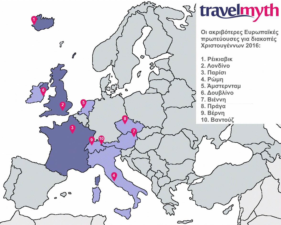 Από τις πρώτες θέσεις δεν θα μπορούσαν να λείπουν οι πρωτεύουσες της Αυστρίας, της Ελβετίας και της Τσεχίας, όπως και οι δημοφιλείς προορισμοί για city breaks, το Άμστερνταμ και το Δουβλίνο.
