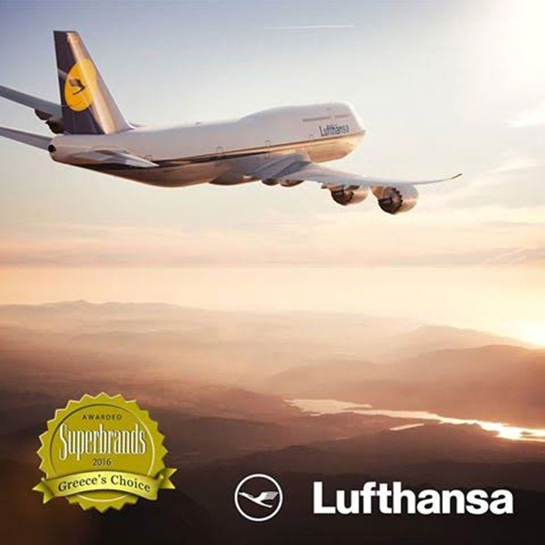 H Lufthansa για μια ακόμη χρονιά, αναδείχθηκε ως ένα από τα κορυφαία Corporate SUPERBRANDS για το 2016 στην Ελλάδα σύμφωνα με τον διεθνώς καταξιωμένο θεσμό Superbrands και τον σχετικό διαγωνισμό αξιολόγησης και επιβράβευσης των πιο επιτυχημένων brands που ξεχωρίζουν στους κλάδους που δραστηριοποιούνται.