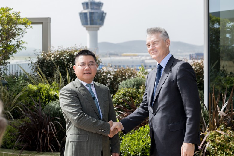 Ο κ. Γιάννης Παράσχης, Διευθύνων Σύμβουλος (CEO), ΔΑΑ και ο κ. Wang Junjin, Πρόεδρος της Juneyao Air