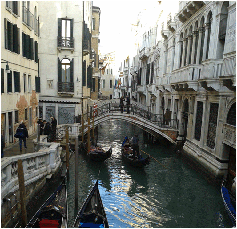 Αξέχαστη εμπειρία είναι η βόλτα με γόνδολα στα κανάλια. Πιο οικονομικά πλωτά μέσα είναι τα θαλάσσια λεωφορεία, ταξί και βαπορέτα.