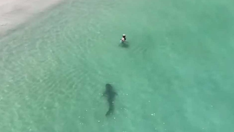 Χωρίς να το γνωρίζουν -αλλιώς ίσως πέθαιναν από… καρδιακό- οι κολυμβητές στην παραλία Hillary Dog, στο Περθ της Αυστραλίας, κολυμπάνε μαζί με έναν καρχαρία-τίγρη…
