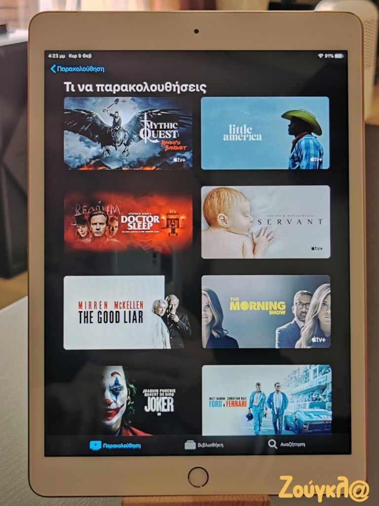 Δυστυχώς δεν υπάρχει θύρα USB, παρά μόνο μία Lightning (περιλαμβάνεται καλώδιο που καταλήγει σε USB), όμως το νέο iPad μοντέλο έχει θύρα 3.5mm jack για ακουστικά, κάτι σίγουρα θετικό. Επίσης, υπάρχουν δύο διαφορετικές εκδόσεις της συσκευής, μία που υποστηρίζει Wi-Fi και μία Wi-FI + LTE (με υποδοχή κάρτας SIM). Εγώ δοκίμασα τη δεύτερη και αυτήν θα πρότεινα, καθώς κατά τη διάρκεια των δοκιμών, είχαμε τη δυνατότητα να χρησιμοποιήσουμε το δίκτυο 4G της COSMOTE και να στριμάρουμε ταινίες και σειρές on the go, στο λεωφορείο, χωρίς καμία καθυστέρηση.