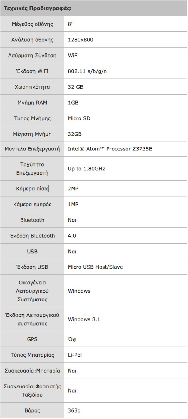 Επιπλέον, παρέχεται δωρεάν αποθηκευτικός χώρος μεγέθους 1TB στο One Drive, για ασφαλή αποθήκευση και συγχρονισμό εγγράφων – αρχείων, καθώς και 60 λεπτά της ώρας Skype world το μήνα δωρεάν, για κλήσεις σε σταθερά τηλέφωνα σε 60 χώρες. Τα χαρακτηριστικά του WTab801 περιλαμβάνουν έναν ισχυρό τετραπύρηνο επεξεργαστή Intel Atom με ταχύτητα έως και 1.8 GHz, οθόνη τεχνολογίας IPS 8 ιντσών, 32GB μνήμη flash και θύρες HDMI / USB, εξασφαλίζοντας την ισχύ και τη συνδεσιμότητα που απαιτούν οι σύγχρονοι καταναλωτές, έχοντας παράλληλα υψηλή ποιότητα κατασκευής και εγγύηση αντικατάστασης από την Info Quest Technologies.