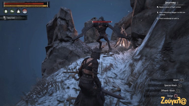 Στις μάχες τα πράγματα δεν είναι εξίσου πετυχημένα, δυστυχώς. Σε γενικές γραμμές βρίσκονται σε ικανοποιητικά επίπεδα, όμως χωράει πολλή βελτίωση. Οι περισσότεροι τύποι εχθρών έχουν παρόμοια patterns επιθέσεων και μπορούμε πολύ εύκολα να κάνουμε κατάχρησή τους. Επίσης, η ΑΙ είναι απλοϊκή, σε σημείο που χαλάει το immersion. Ένα άλλο μεγάλο πρόβλημα είναι τα hitboxes, τα οποία δεν είναι ξεκάθαρα και λειτουργικά ορισμένα και, σε συνδυασμό με το προβληματικό σύστημα lock-on, πολλές φορές καθιστούν τις μάχες αγγαρεία. Ακόμη, ο χρόνος του respawn των εχθρών ήθελε περισσότερη προσαρμογή. Πολλές φορές, ενώ “καθαρίζουμε” έναν καταυλισμό από εχθρούς, βλέπουμε κάποιους να εμφανίζονται ξανά, μπροστά στα μάτια μας.