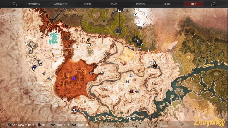 Για να καταφέρουμε να φύγουμε από την πρώτη μας βάση επιτυχώς και να μην πεθάνουμε αμέσως, πέρασαν αρκετές ώρες. Εφοδιαζόμαστε με ψημένο κρέας, νερό σε φλασκί και φορητά κρεβάτια, τα οποία λειτουργούν ως spawn points όπου εμφανιζόμαστε ξανά μετά από τον θάνατό μας. Η πρώτη μας έξοδος στον υπόλοιπο κόσμο του παιχνιδιού, ήταν το highlight του Conan Exiles. Η αίσθηση της περιπέτειας ήταν απαράμιλλη και η ικανοποίηση πολύ μεγάλη. Επίσης, ο κόσμος είναι γεμάτος περίεργες τοποθεσίες που μας προσκαλούν από μακριά να πλησιάσουμε. Το μέγεθος και η επιβλητικότητα των κτισμάτων έχει χρησιμοποιηθεί εκπληκτικά: στον ορίζοντα, βλέπουμε συνεχώς τεράστια landmarks τα οποία μας προκαλούν να τα εξερευνήσουμε. Μπορούμε να πάμε παντού, μέσα στα όρια του χάρτη, καθώς μπορούμε να σκαρφαλώσουμε κάθετα σε όλους τους τοίχους, όπως στο Βreath of the Wild. Ο χάρτης είναι ολόκληρος στη διάθεσή μας από την αρχή, δεν χρειάζεται να τον ξεκλειδώσουμε. Fast Travel δεν υπάρχει (στην αρχή).