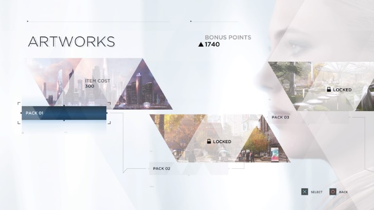 Προσπαθώντας να σας παρακινήσει να παίξετε ξανά κάποιες σκηνές, το Detroit για κάθε επιλογή που ξεκλειδώνετε στο flowchart κάθε σκηνής, σας ανταμείβει με πόντους, που χρησιμοποιείτε για να ξεκλειδώσετε διάφορα extras, όπως κομμάτια από το soundtrack, concept art και πολλά άλλα. Επιστρέφοντας σε ένα κεφάλαιο, αν επιλέξετε διαφορετική προσέγγιση, κερδίζετε παραπάνω πόντους.