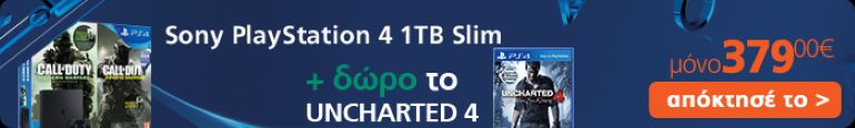 Και αν ενδιαφέρεσαι να αποκτήσεις οπωσδήποτε το Uncharted 4 για να «ζήσεις» την περιπέτεια του Nathan Drake , τότε πρέπει να αναζητήσεις άμεσα το πακέτο PlayStation 4 – 1TB Slim D Chassis & Call of Duty: Infinite Warfare Legacy Edition. Το πακέτο περιλαμβάνει το παιχνίδι Call of Duty: Infinite Warfare Legacy Edition, και το Call of Duty 4: Modern Warfare Remastered (και τα δύο, σε ψηφιακή μορφή. Σημείωση: το Call of Duty: Infinite Warfare θα είναι διαθέσιμο προς download στις 4/11/2016). Απόκτησε τα όλα τώρα με 379€ και πάρε δώρο το Uncharted 4: Το Τέλος Ενός Κλέφτη.