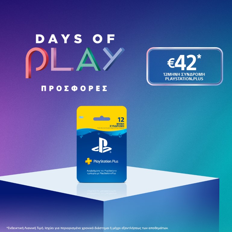 Όπως κάθε χρόνο, έτσι και φέτος, το PlayStation γιορτάζει μαζί με όλους τους gamers ένα 15ήμερο προσφορών, το οποίο καλύπτει μια ποικιλία από παιχνίδια, περιφερειακά, συνδρομές και άλλα. Οι Days of Play είναι μια γιορτή για την κοινότητα του PlayStation σε όλο τον κόσμο και αποτελεί ένα μεγάλο «ευχαριστώ» για το πάθος και την αγάπη που δείχνουν οι fans.