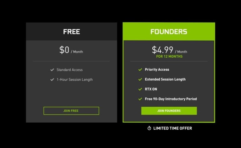 Έγινε δοκιμαστικά διαθέσιμη η υπηρεσία πριν μερικές ημέρες και στη χώρα μας. Η υπηρεσία διαθέτει δύο μοντέλα: ένα δωρεάν που επιτρέπει δοκιμή για μονόωρα sessions και μία επί πληρωμή (€5,49/μήνα), που επιτρέπει απεριόριστο χρόνο χρήσης, αλλά και χρήση ray-tracing στα παιχνίδια που το υποστηρίζουν, ενώ παράλληλα προσφέρει και “προτεραιότητα” για τη χρήση.