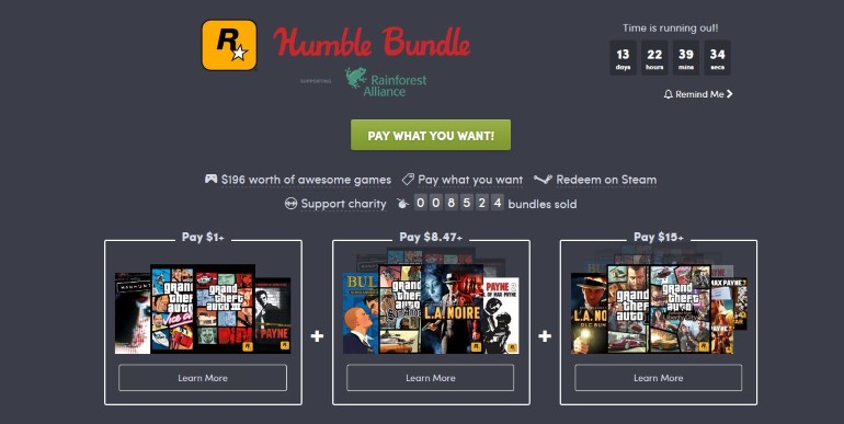 Το νέο bundle του Humble Bundle είναι μια πραγματικά εξαιρετική ευκαιρία, καθώς τα διαμάντια της Rockstar Games είναι τα καλούδια του νέου πακέτου, που έχει σκοπό σκοπό να ενισχύσει το έργο της Rainforest Alliance.