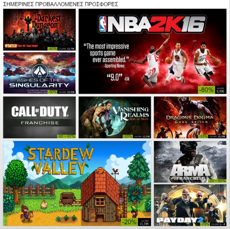 Καθημερινά θα βρείτε δεκάδες διαφορετικές προσφορές, με τις καλύτερες να εμφανίζονται και στην αρχική σελίδα του Steam.