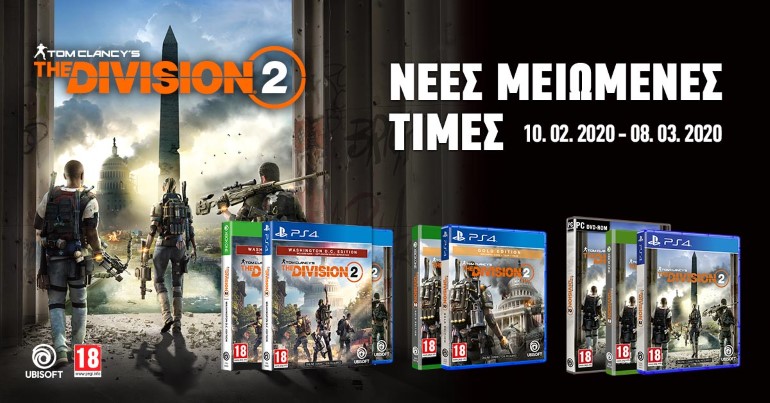 Η προσφορά για το The Division 2 ξεκινάει από τις 10 Φεβρουαρίου και θα ισχύει έως τις 3 Μαρτίου.