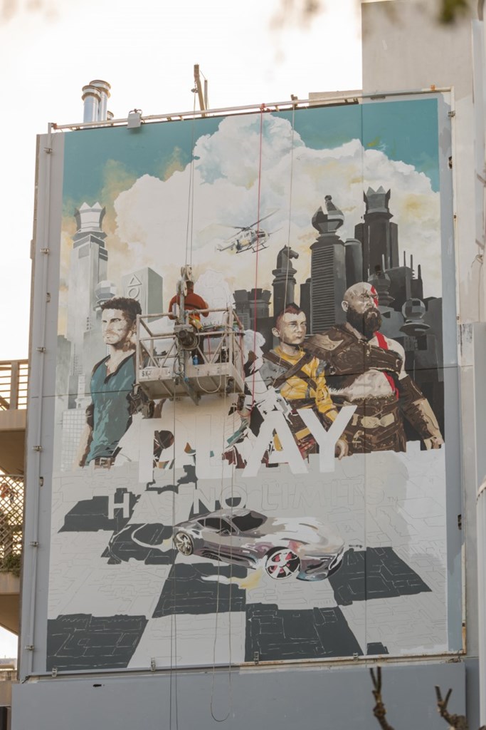 Για να αναδείξει το δυναμικό αυτό brand spot, το PlayStation στην Ελλάδα συνεργάστηκε με την UrbanAct για να δημιουργήσει μια εντυπωσιακή τοιχογραφία στο κέντρο της Αθήνας μέσα από τα χέρια του γνωστού καλλιτέχνη Same84 του οποίου το πλούσιο ταλέντο και οι τεχνικές δεξιότητες ζωντανεύουν το εντυπωσιακό key visual της καμπάνιας “Play Has No Limits”. Η τοιχογραφία απεικονίζει εμβληματικούς χαρακτήρες από αγαπημένους τίτλους του PlayStation μέσα σε μία πόλη που βρίσκεται σε εορταστική ατμόσφαιρα.