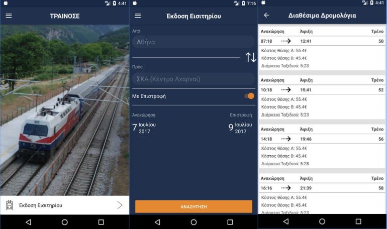 Μια νέα υπηρεσία έχουν στη διάθεσή τους οι επιβάτες, οι οποίοι έχουν στο κινητό τους τηλέφωνο λογισμικό Android. Κατεβάζοντας τη νέα εφαρμογή της ΤΡΑΙΝΟΣΕ μπορούν να εκδίδουν το εισιτήριό τους μόνο με τη χρήση του κινητού, γρήγορα όπου και αν βρίσκονται οποιαδήποτε στιγμή.